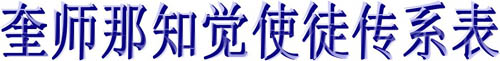 1、奎师那(Krsna) 2、大梵天(Brahma) 3、拿拉达(Narada) 4、维亚萨(Viyasa) 5、玛德瓦(Madhva) 6、帕德玛那巴(Padmanabha) 7、尼尔哈利(Nrhari) 8、玛达瓦(Madhava) 9、阿克首比亚(Aksobhya) 10、佳雅·提尔塔(Jaya Tirtha) 11、嘎纳辛度(Jnanasindhu) 12、达雅尼迪(Dayanidhi) 13、维迪亚尼迪(Vidyanidhi) 14、茹阿坚卓(Rajendra) 15、佳雅达尔玛(Jayadarma) 16、普茹首塔玛(Purusottama) 17、布茹阿曼亚·提尔塔(Brahmanya Tirtha) 18、维亚萨·提尔塔((Vyasa Tirtha) 19、拉克施密帕提(Laksmipati) 20、玛达文卓·普利(Madhavendra Puri) 21、伊斯瓦尔·普利(Isvara Puri), 尼提阿南达(Nityananda), 阿兑塔(Advaita) 22、主采坦尼亚(Sri Caitanya Mahaprabhu) 23、茹帕,斯瓦茹帕,萨拿坦(Rupa, Svarupa, Sanatana) 24、茹阿古纳塔,吉瓦(Raghunatha, Jiva) 25、奎师那达斯(Krsnadasa) 26、纳若塔玛(Narottama) 27、维士瓦纳塔(Visvanatha) 28、巴拉兑瓦,佳甘纳塔(Balaveva, Jagannatha) 29、巴克提维诺德·塔库(Bhaktivinoda Takur) 30、高尔克依首尔·达萨·巴巴吉(Gaurakisora) 31、巴克提希丹塔·萨拉斯瓦提(Bhaktisidanta Sarasvati) 32、A.C.巴克提韦丹塔·斯瓦米·帕布帕德(A.C.Bhaktivedanta Swami Prabhupada,创办灵性导师) 33、国际奎师那知觉协会(益世康)启迪灵性导师(圣帕布帕德嫡传弟子,第一代启迪古茹) 34、益世康第二代启迪古茹 |